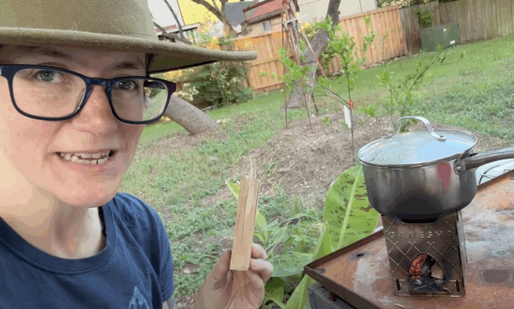 One of the most surprising parts of this outdoor cooking experience was how fuel efficient the Ganesha stove is. Over three days, I used only 14 small sticks of wood, each about the size I normally collect when preparing for fire.